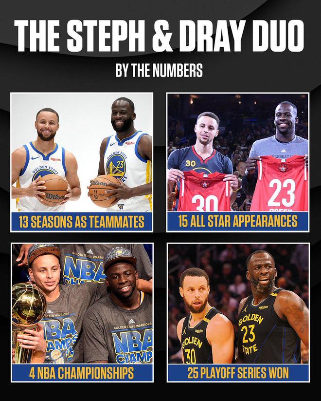 雷速体育10月20日讯 Peacock官方社媒今天晒照,库里和格林将以队友身份开始他们的第14个赛季。两人搭档的前13个赛季荣誉如下:合计入选15次全明星夺得4次总冠军赢得了25轮系列
