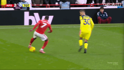 第50分钟,世界波!奥多伊吊射后点完成梅开二度,诺丁汉森林2-0热刺