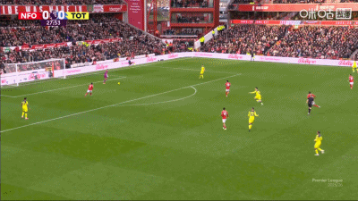 第28分钟,格雷后场被抢断,奥多伊推射空门,诺丁汉森林1-0领先热刺